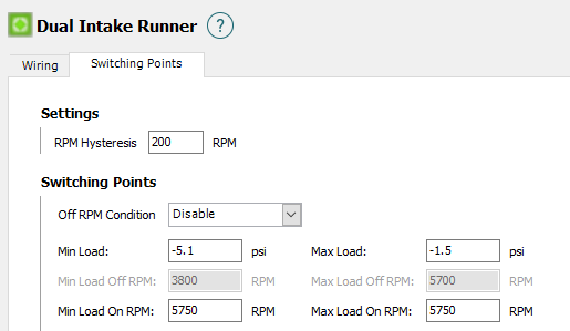 | Haltech Elite Series Setting | Value |