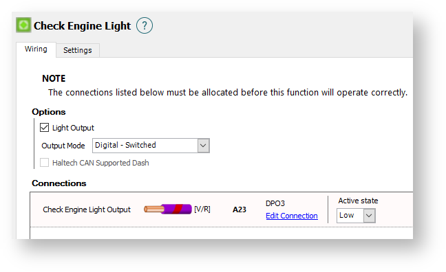 Select an available output wire, typically a DPO (Digital Pulsed Output) that will be connected to the CEL.