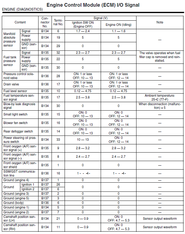 Unlike the earlier EJ20 engines the EJ25 uses the intake cam for Bank 1 as the cam position sensor used for engine sync, and they have an additional sensor for each other variable cam to supply a cam position signal to the ECU to allow cam control. A duty control solenoid is present for each cam actuator with the system operating in closed-loop.