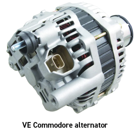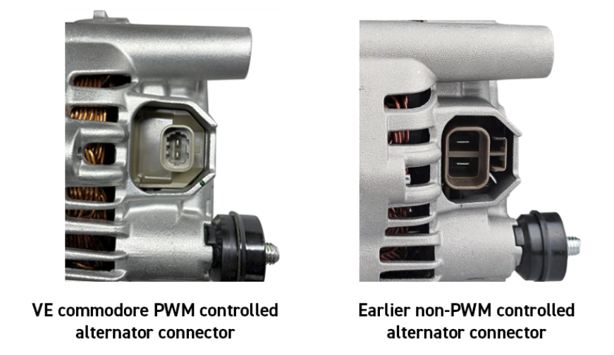 This alternator is similar to those used on earlier Commodore LS engines but features a PWM-controlled regulator instead. It can be identified by its connector — the earlier unit uses a larger connector compared to the PWM-controlled version. The changeover occurred around 2006.