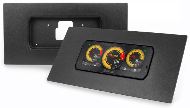 Bolts directly to the back of your uC-10 dash display using three mounting screws provided. The dimensions are 500mm (20”) x 250mm (10”), which can be trimmed to fit a variety of cluster surrounds.