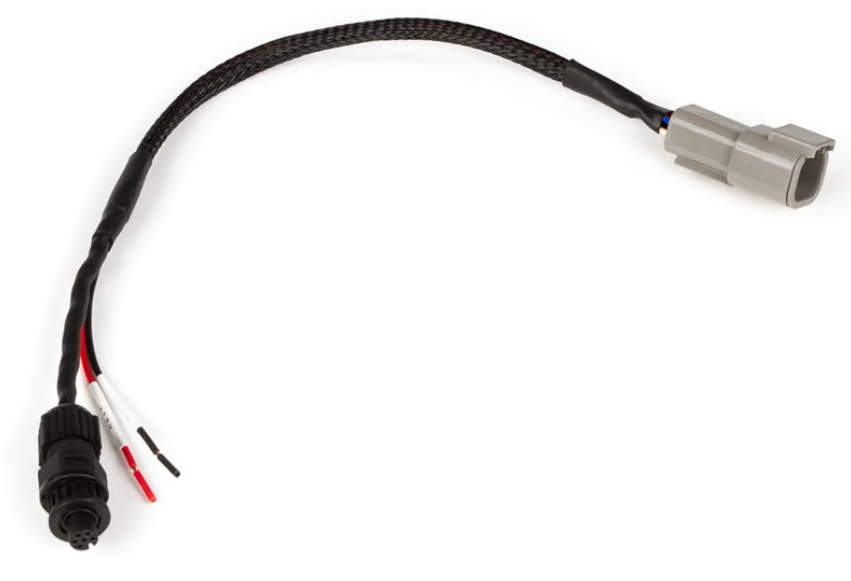 If you are using a Haltech Platinum Series ECU, an additional CAN cable adapter is required to convert the DTM-4 plug to an 8-pin Tyco connector. This cable is included with the ECU upon purchase and can also be bought separately if you need a new one (HT-130040).