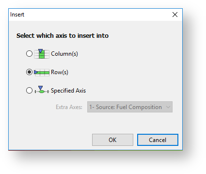 To delete an axis point, select the 'Del' key. A delete dialog will appear. It will prompt you to delete either the current row(s) or column(s).