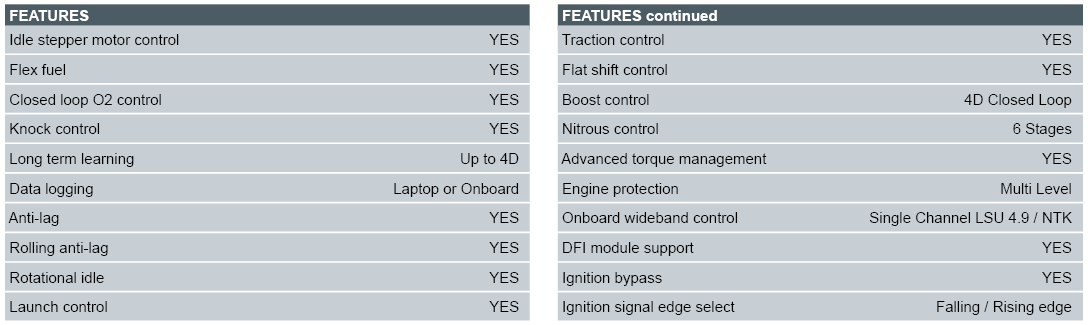 5. Wideband O2 -For tuning and closed loop O2 control, a Bosch LSU 4.9 or NTK sensor must be connected via the auxiliary connector port.