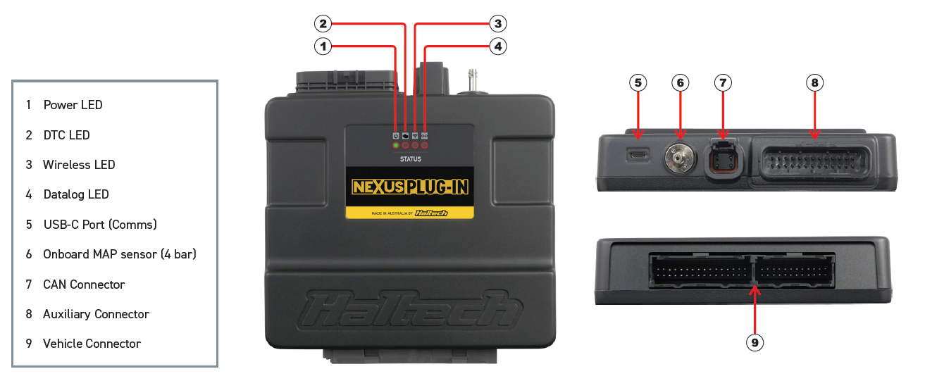 The Nexus Plug-in ECU is equipped with an onboard CAN connector for direct connection to a wide range of Haltech CAN expansion products.