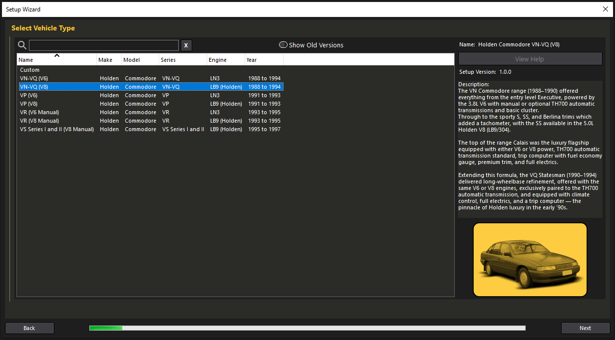 • Holden Commodore VR-VS V8 (Distributor), manual transmissions only; Does not support VS Series III