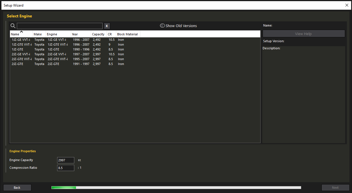 Next, you select a base engine from a list of Toyota JZ