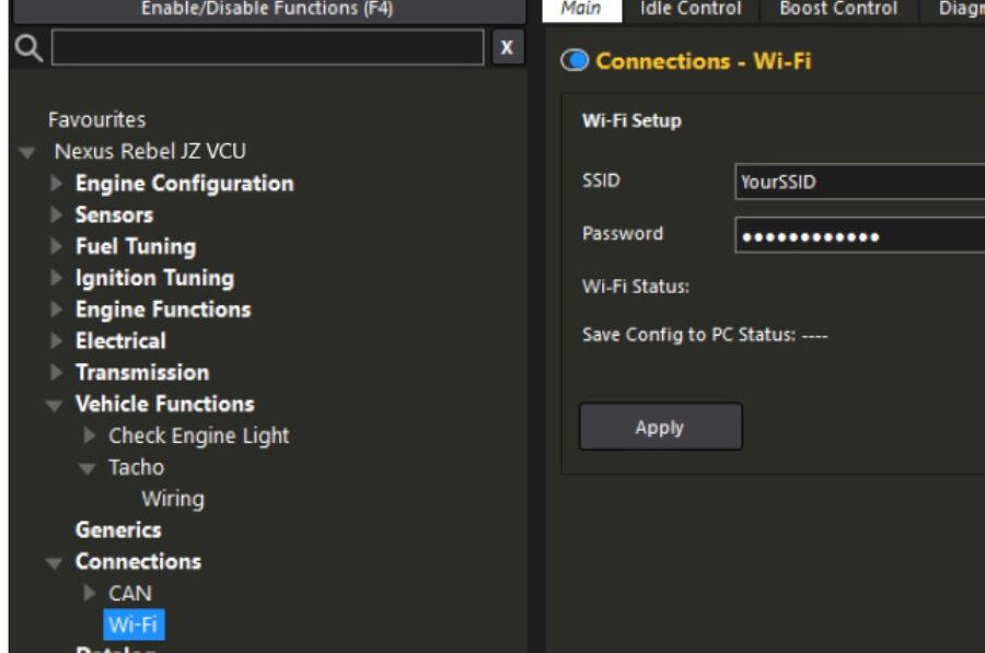 then go to your computer’s Network settings. Connect to your Nexus Rebel JZ ECU