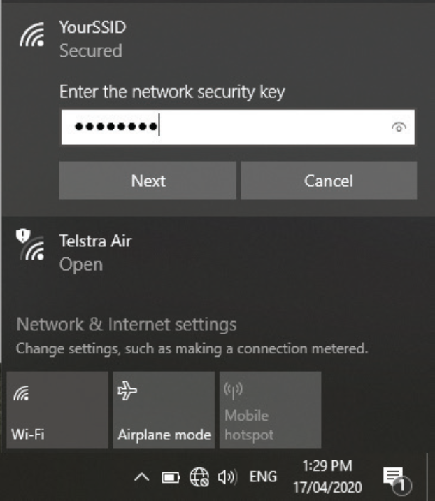 by selecting your chosen SSID and entering your password.