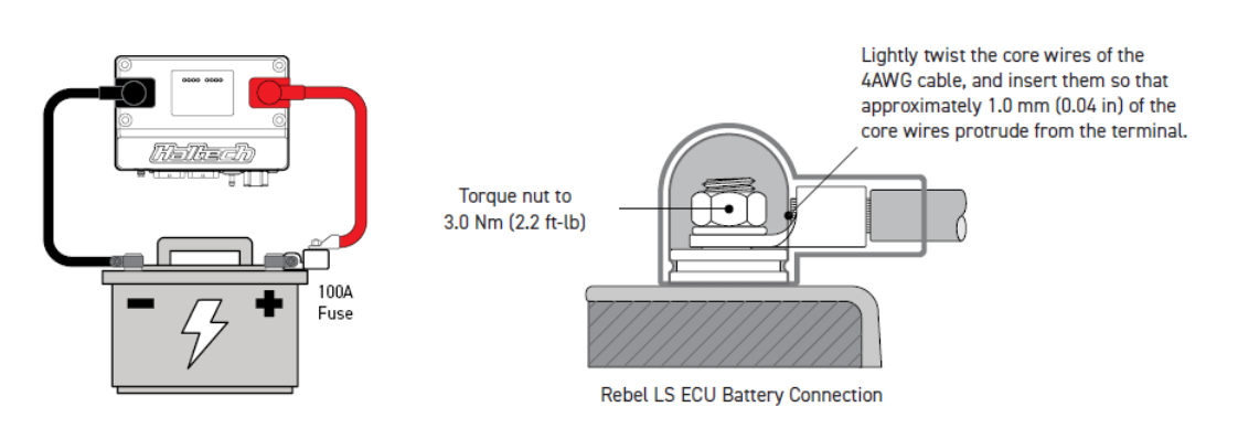 For correct operation, the battery positive and battery negative must be connected to the Nexus Rebel LS ECU at all times.