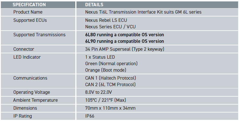 After installing and setting up your Nexus Ti6L to operate with your Nexus ECU and 6L transmission, either via the Setup Wizard or through manual configuration, it is highly recommended that you reflash the 6L transmission operating system (OS) with a version supported by the Ti6L. This ensures the transmission is running a compatible OS that the Nexus Ti6L can communicate with, which is essential for correct and reliable transmission operation.