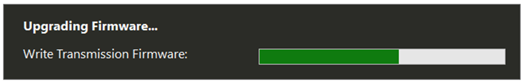 5. Wait for the transmission firmware upgrade process to complete. The reflashing process can take 15 minutes or more to complete, depending on laptop performance.
