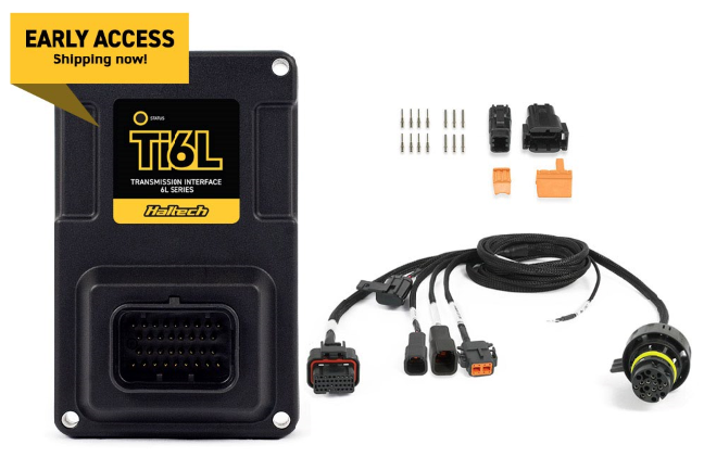 The HT-187007 6L Transmission Harness is equipped with a black DTM04-6P “Shifter” connector that provides spare analogue voltage inputs from the Nexus Ti6L. If not already wired to your Nexus ECU, these inputs can be used to wire to 6L transmission shifters with Manual or Sports mode, enabling tap up and tap down gear changes. In some shifters, this is indicated by “+” and “–” symbols, while others use paddles behind the steering wheel, or a combination of both.