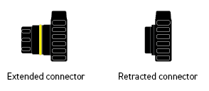 2. Install the 6L transmission harness - Locate the round connector at the rear of the transmission where the matching 16-pin round connector from one end of the 6L transmission harness will be plugged in. Ensure that the inner part of the round connector is fully extended, as shown below. If it is retracted, you can push the inner part of the connector outward from the rear until it clicks into place. Note that a retracted connector will engage the socket but not fully engage the pins on the mating transmission connector, resulting in no electrical connection. After extending the connector, ensure the connector ring is fully rotated counterclockwise against the inner part to lock the keyways in place. Once everything is set, plug the connector into the transmission with the connector ring tab pointing upward, and twist it clockwise while gently pushing forward to locate the keyway (approximately at the position shown below). Once seated, twist the connector further about a quarter turn clockwise to lock it in place.